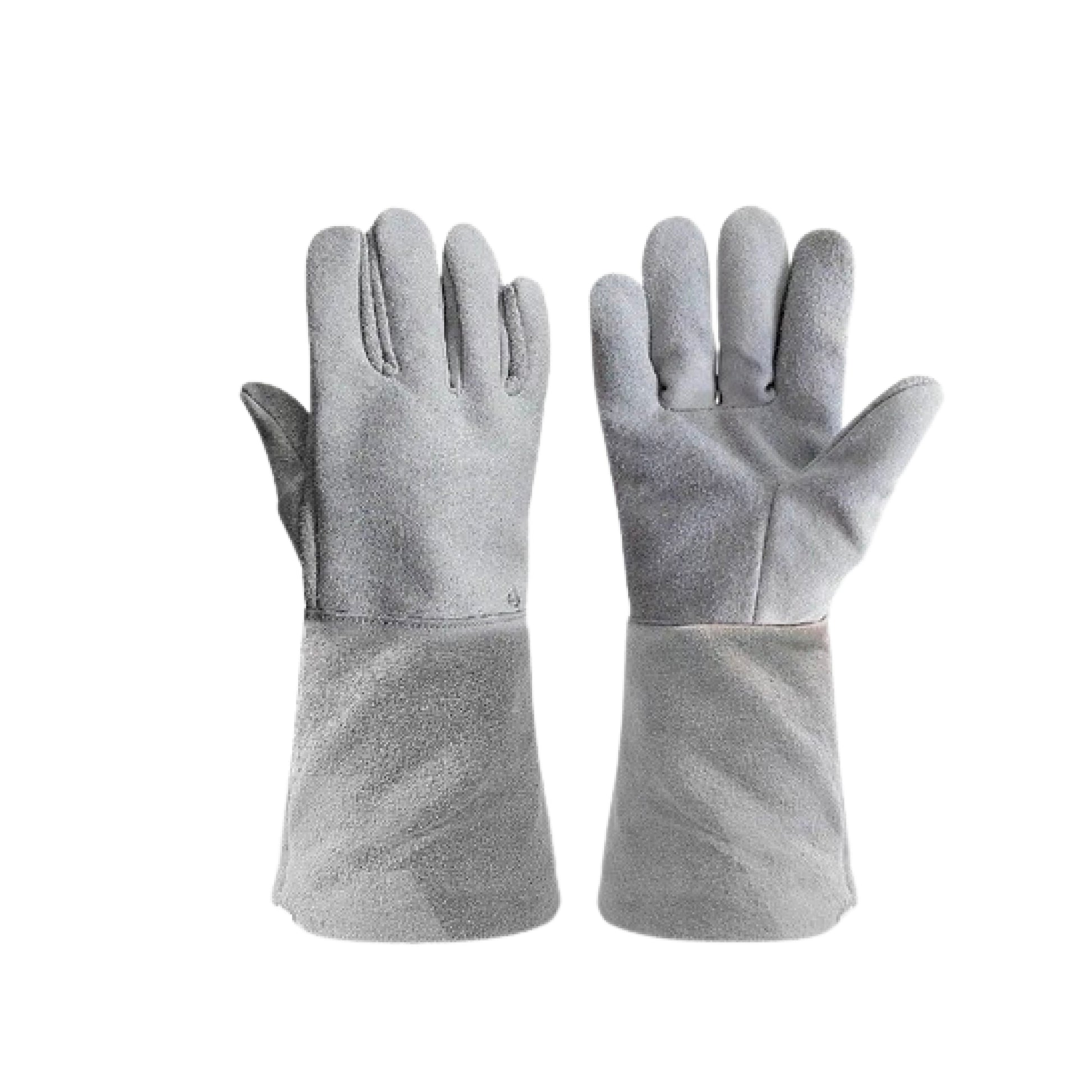 Este guante está fabricado 100% en cuero, garantizando resistencia y durabilidad. Su combinación de colores gris y amarillo destaca por su diseño práctico y profesional. Cuenta con refuerzos en vaqueta en la palma y los dedos, lo que ofrece una excelente protección y mayor durabilidad en las zonas más expuestas. El material utilizado incluye carnaza y vaqueta de alta calidad, con calibres que aseguran un ajuste perfecto y cómodo: 0.9 mm en general, 0.11 mm en refuerzos y 0.22 mm en el dorso y la manopla.
